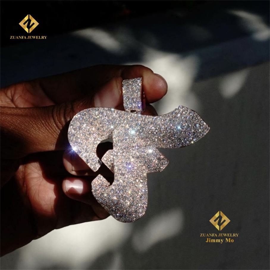 Colgante de Letra F con Incrustaciones de Diamantes Moissanite VVS1 de Alta Calidad, Estilo Hip Hop, Plata 925