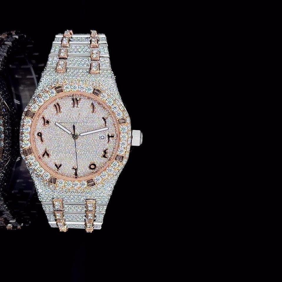 Reloj de diamantes con moissanita totalmente helado para ocasiones especiales, relojes de pulsera mecánicos automáticos antiguos únicos personalizados para hombres