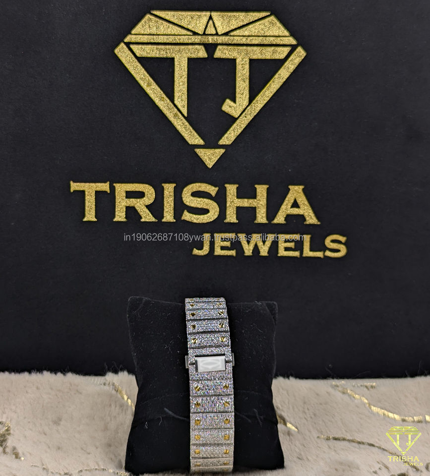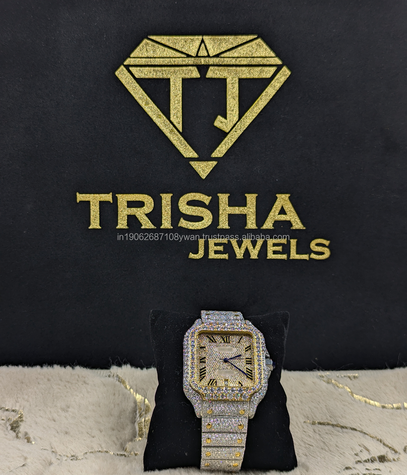 Reloj cuadrado de diamante cultivado en laboratorio VVS completamente helado, reloj de pulsera con esfera de número romano y busto de Hip Hop de dos tonos para hombre
