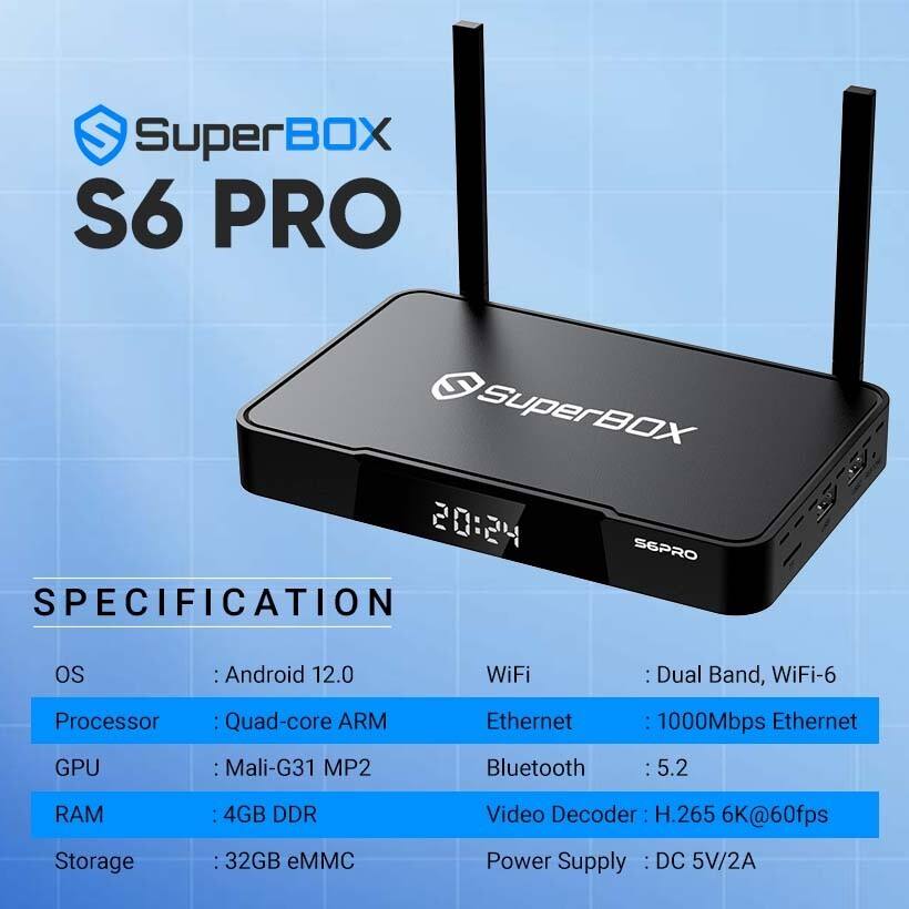 Reproductor Multimedia Box S6 Pro Super TV BOX 2025 Completamente Equipado, 4GB + 32GB