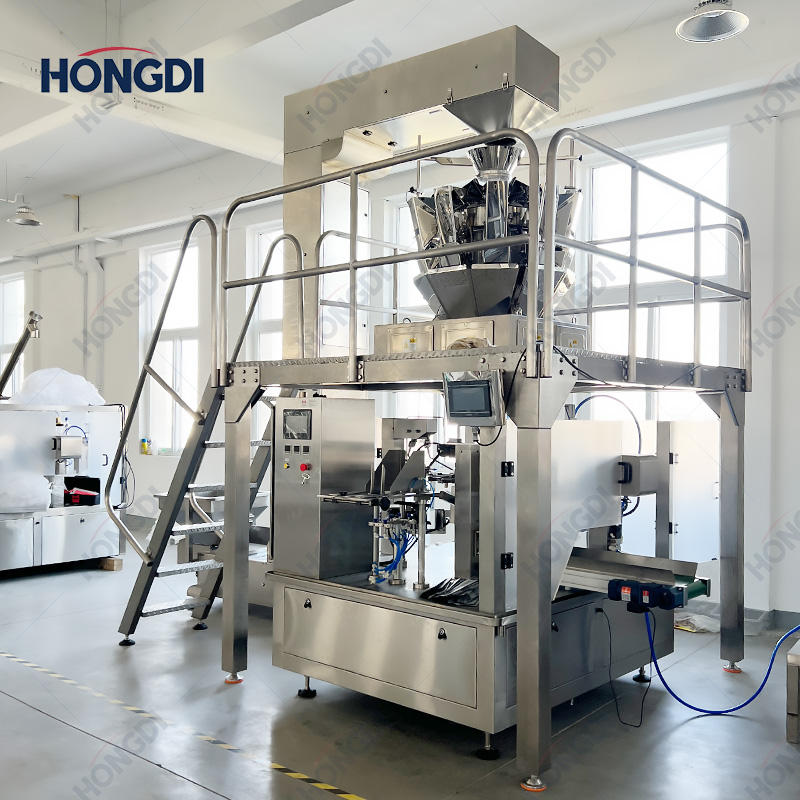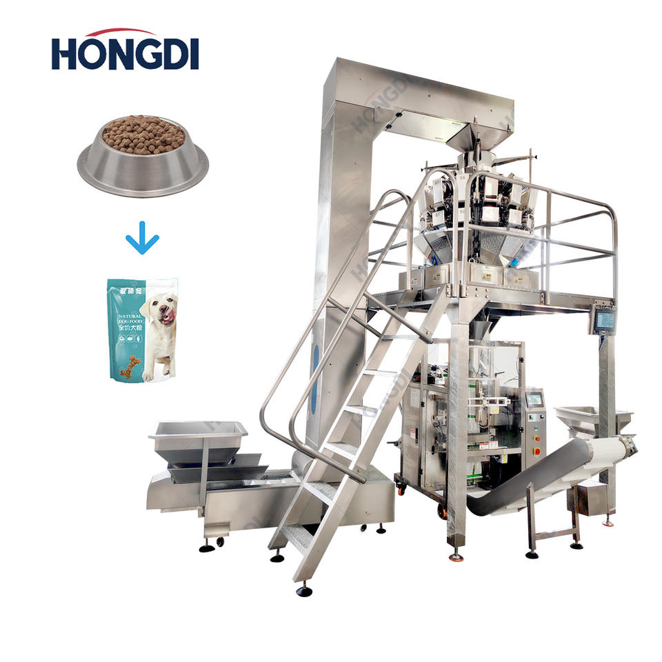 Báscula combinada totalmente automática combinada con una máquina de envasado de 8 estaciones para gránulos alimenticios