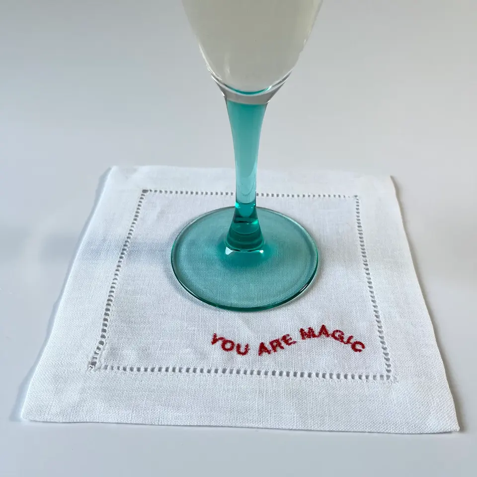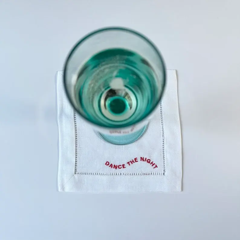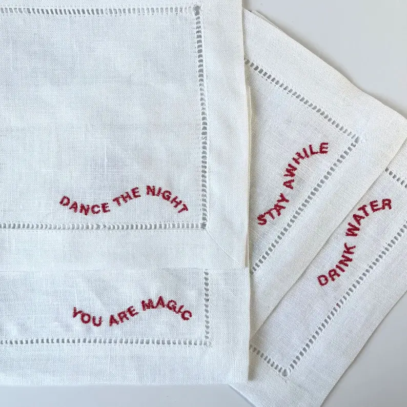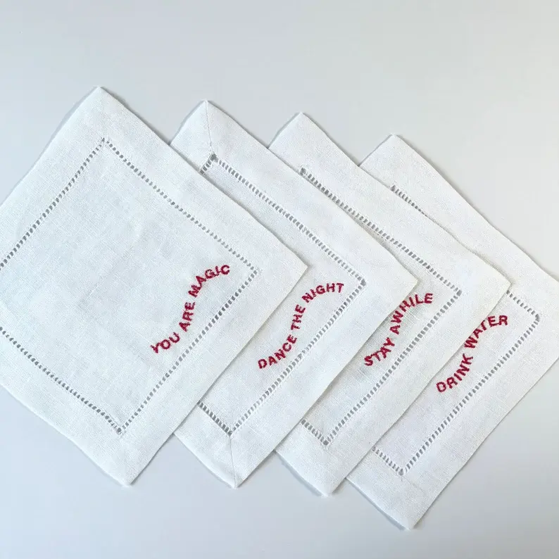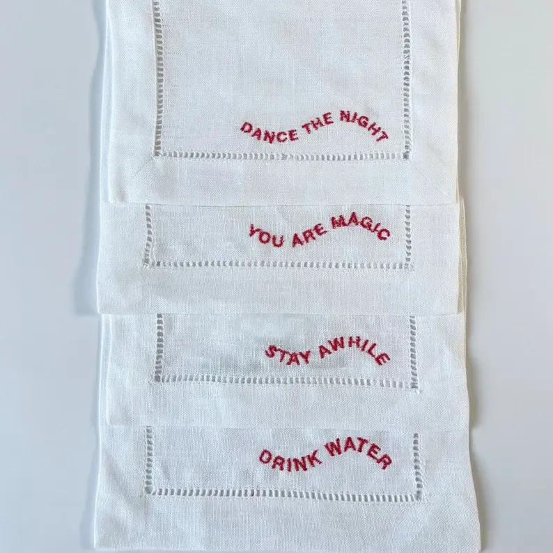 Divertidas servilletas de lino bordadas Blanco Rojo Baile/Estancia/Frases de bebida para fiestas Agregar Vibe Reuniones Cuadrado Blanco Rojo Bordado