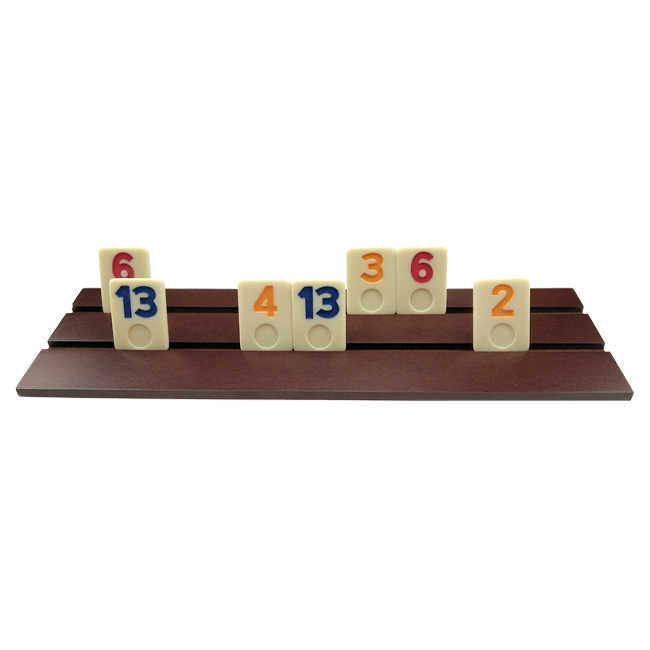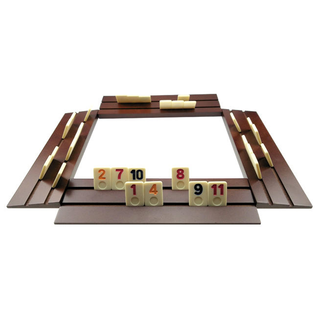 Mini juego de mesa Rummy de viaje en caja de madera con estante de madera