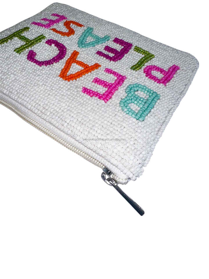 Monedero divertido con cremallera, hecho a mano, bordado con cuentas, duradero, ecológico, de gran capacidad, con cuentas de semillas personalizadas, suave