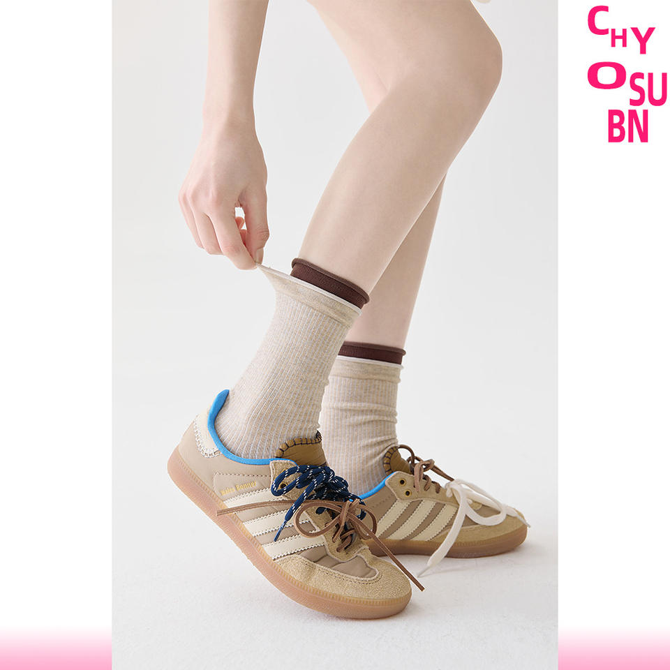 Calcetines Funchen Crew de Doble Capa, de Algodón, Estilo Slouch, para Mujer, Verano, con Volantes, Modernos, Grises, Finos, Transpirables, con Encaje Jacquard