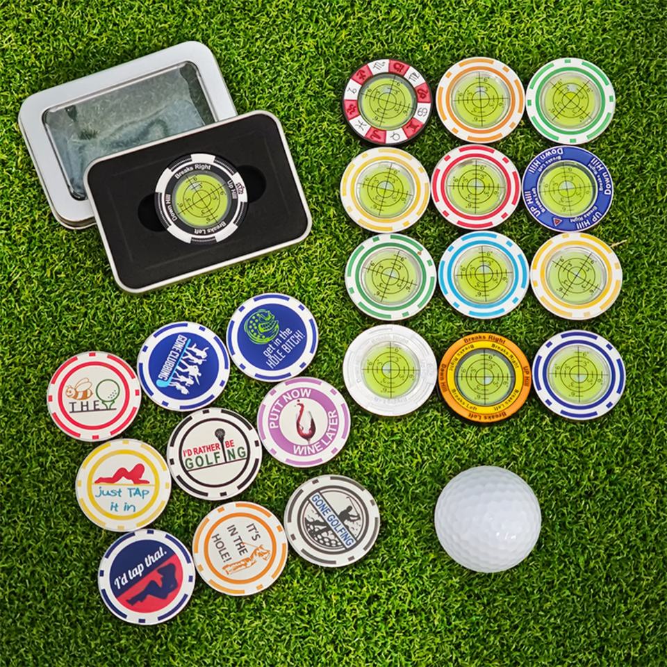 Marcador de nivel de burbuja magnético para golf con logotipo personalizado, accesorio de golf de metal para entrenamiento de putting en pendientes