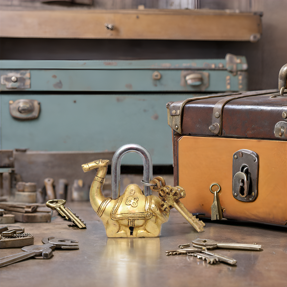 Candado inteligente de latón dorado Camel, cerradura de hierro, llave impermeable funcional y elegante, forma de camello dorado, bloqueo de palanca única, 0,59 kg