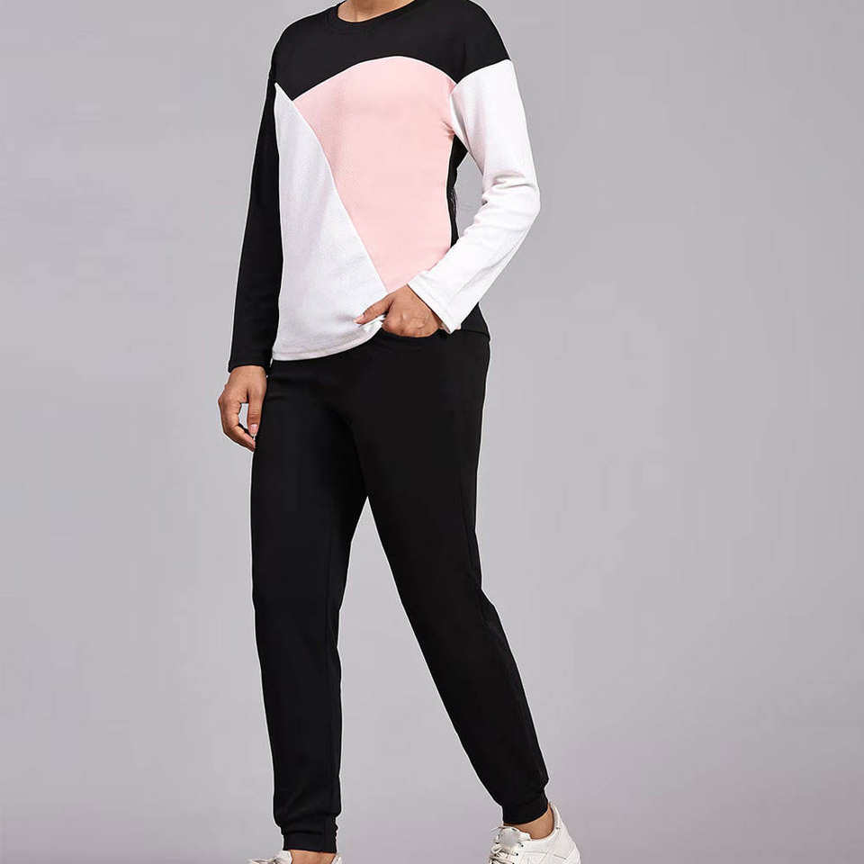 Funky Kitted logotipo bordado personalizado manga larga poliéster alta calidad señoras chándales sudaderas con capucha conjunto deportivo de dos piezas