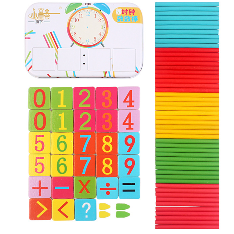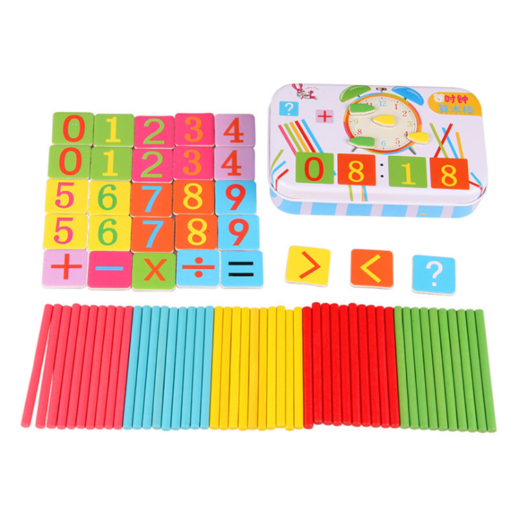 Juguete de aprendizaje de matemáticas para niños, diseño de reloj digital todo en uno, palos contadores de madera