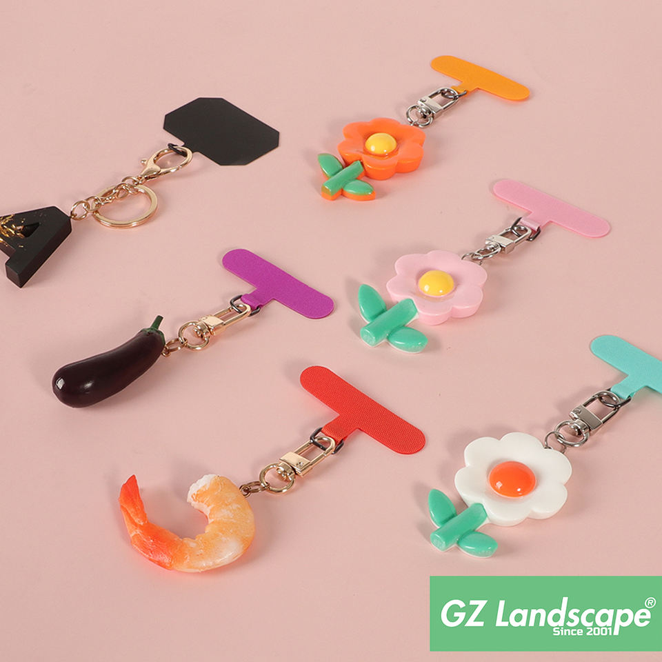 Divertida simulación berenjena Camarón flor colgante teléfono móvil encanto teléfono móvil Universal Mini tela parche Tab llavero personalizado