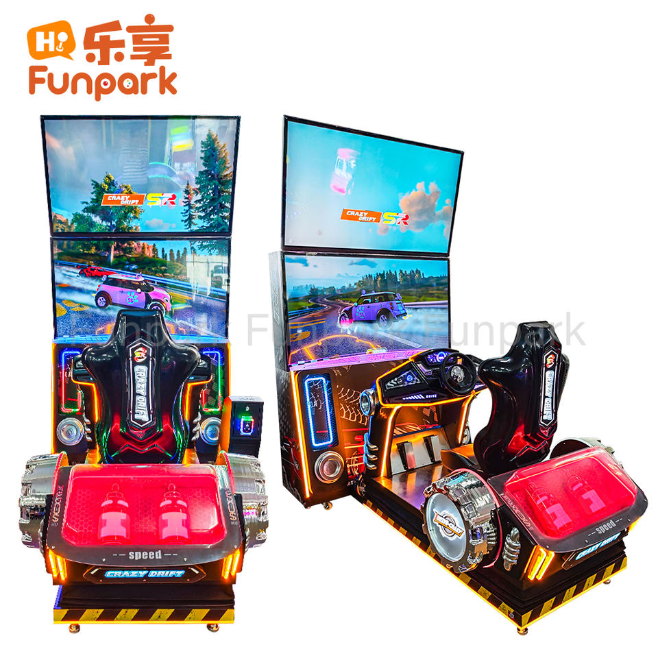 Novedad en Funpark: Simulador de Carreras para 2 Jugadores con 2 Pantallas, Máquina Arcade de Carreras, Funciona con Monedas, en Inglés, 1 Año de Garantía