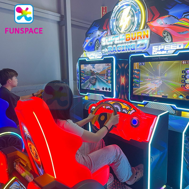 Máquina de Videojuegos Arcade con Asiento Dinámico Funspace, Simulador de Conducción Operado con Monedas, Juego de Carreras para Dos Personas para Centro de Juegos