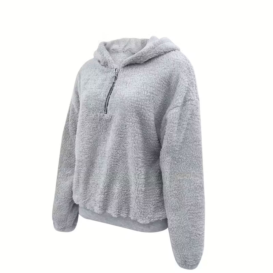 Sudaderas con Capucha de Piel para Hombre, Color Gris, Media Cremallera, Cálidas para Invierno, Estilo Hip Hop, con Diseño y Talla Personalizados