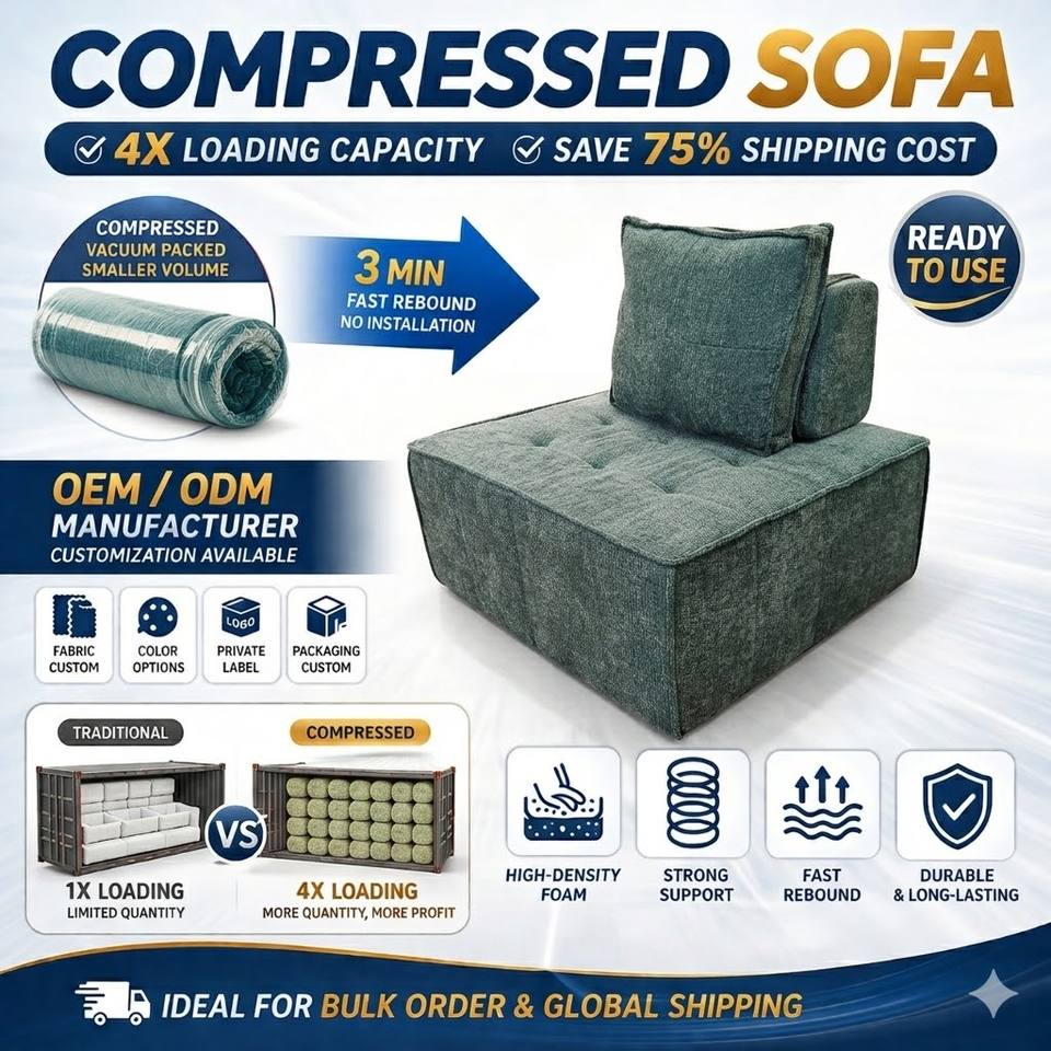 Sofá Modular Moderno Comprimido para Sala de Estar, Silla sin Brazos, Empacado al Vacío, de Fábrica de Muebles