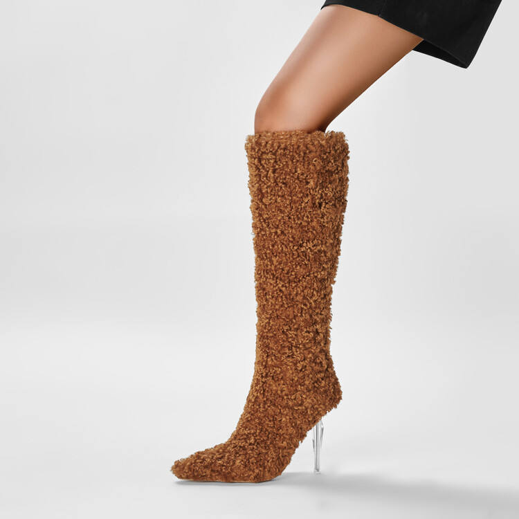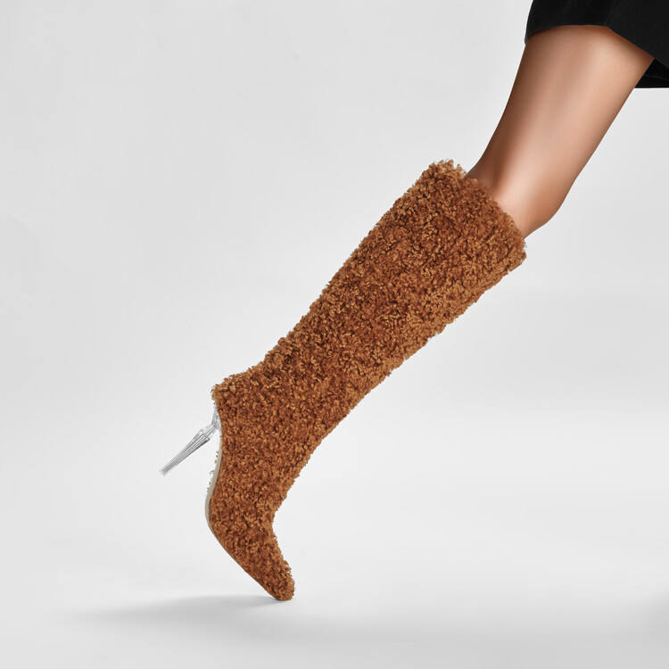Botas Peludas para Mujer con Punta Puntiaguda y Tacón de Aguja, Nuevas Botas de Moda con Piel Sintética