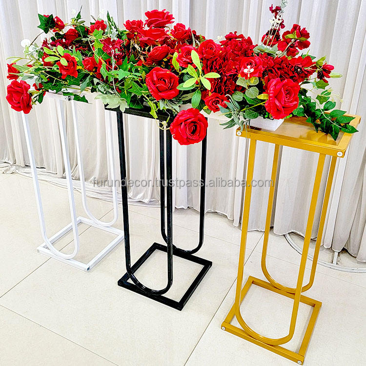 Centro de centro de pilar de boda cuadrado de espejo dorado de diseño Furun para decoración de mesa de eventos