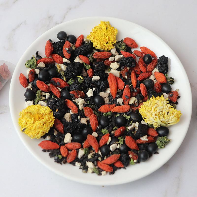 Ingredientes:Frijol negro, níspero, sésamo negro, morera, Poria