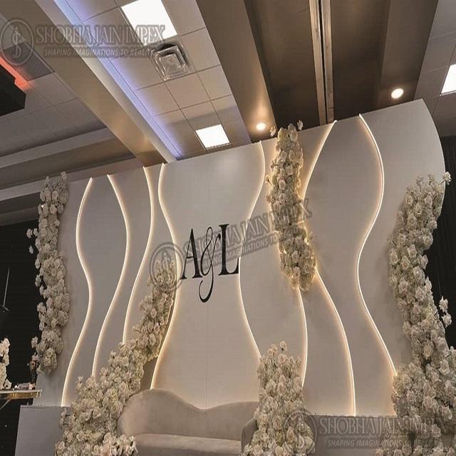 Fusion Style White Theme Wedding Stage Decoraciones Decoración Premium para su día especial
