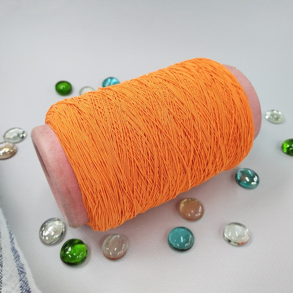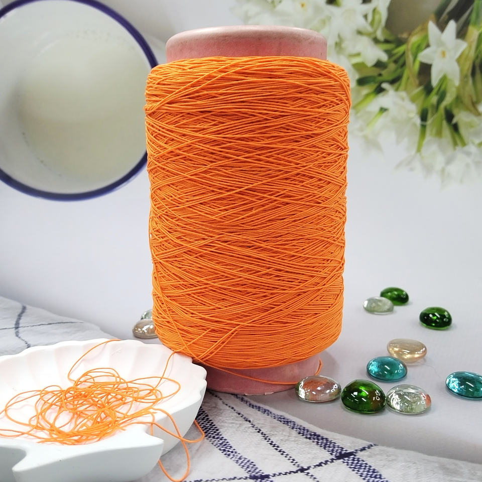 Hilo Fusion recubierto de nailon con tacto suave, especialmente utilizado para calcetines, hilo naranja de fábrica, hilo de caucho hilado, elástico