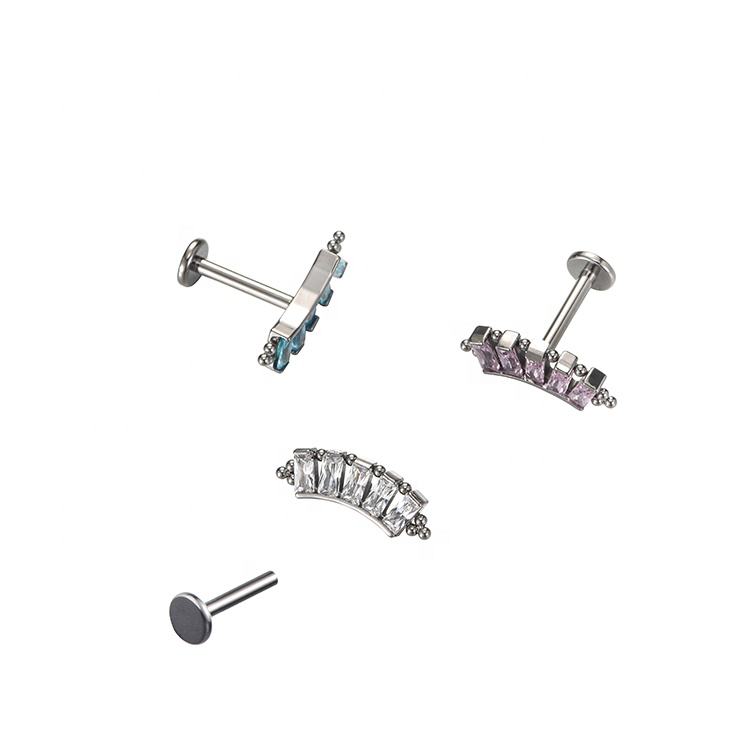 Fuxuan ASTM F136 titanio 5 rectángulo circón con trío bolas en el lado Labret cuerpo joyería Piercing titanio