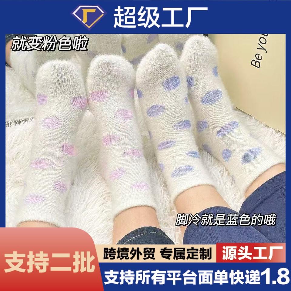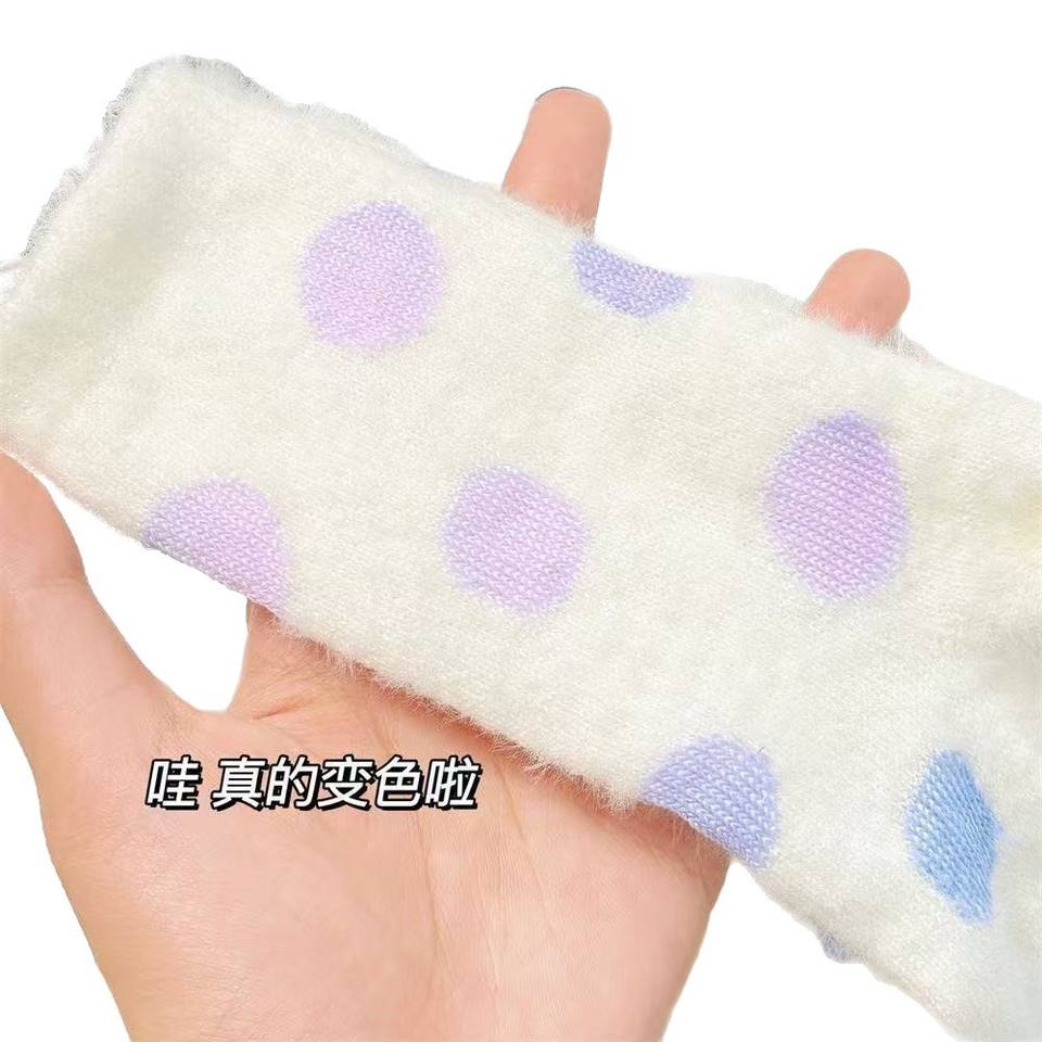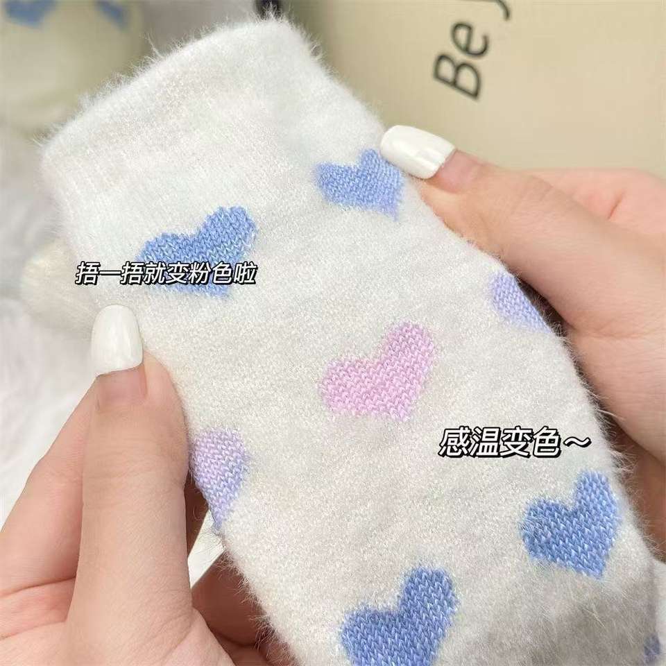 Calcetines afelpados con patrón de corazones que cambian de color con el calor para mujer, calcetines cálidos de invierno.