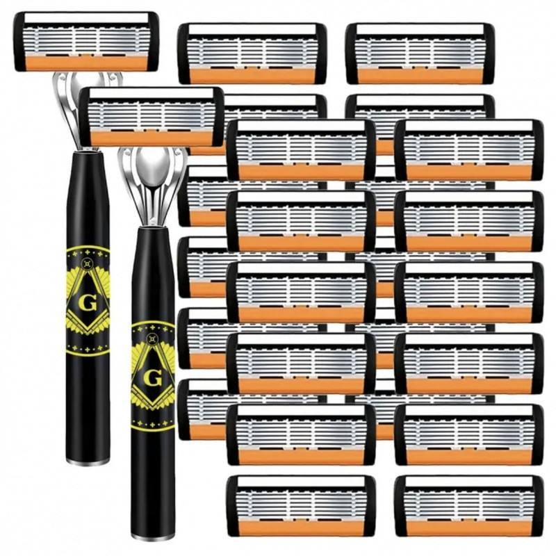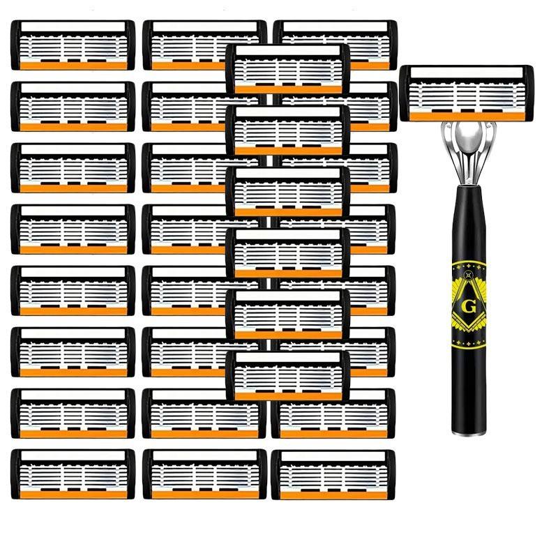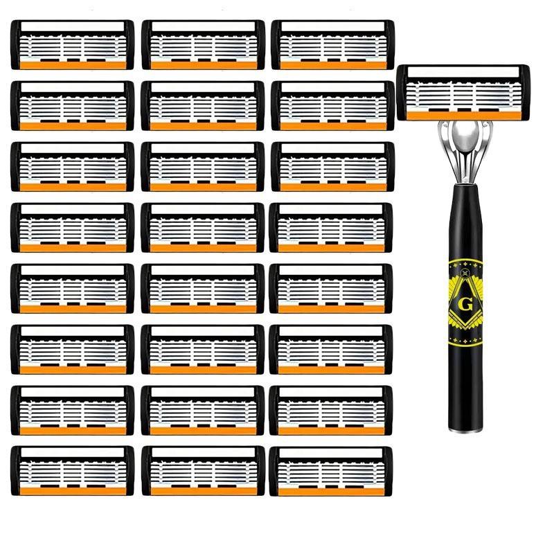 G Type Manual Razor Handle With 6 Layer Blades Stainless Steel For Men Face Shaving