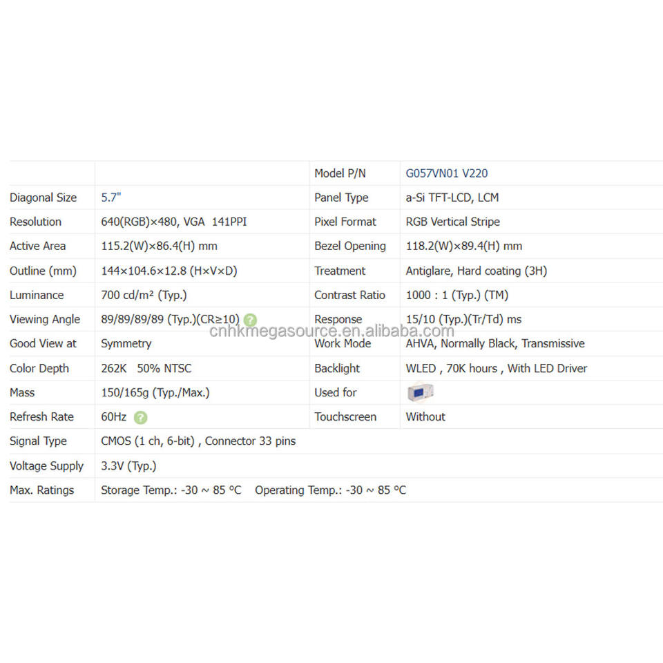 Modelo:G057VN01 V220