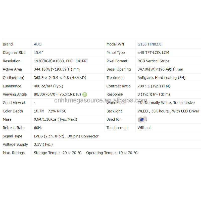 型号: G156HTN02.0