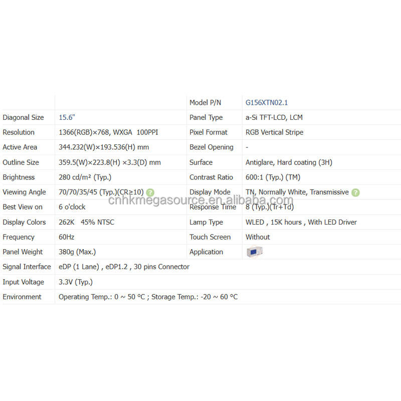 Modelo:G156XTN02.1