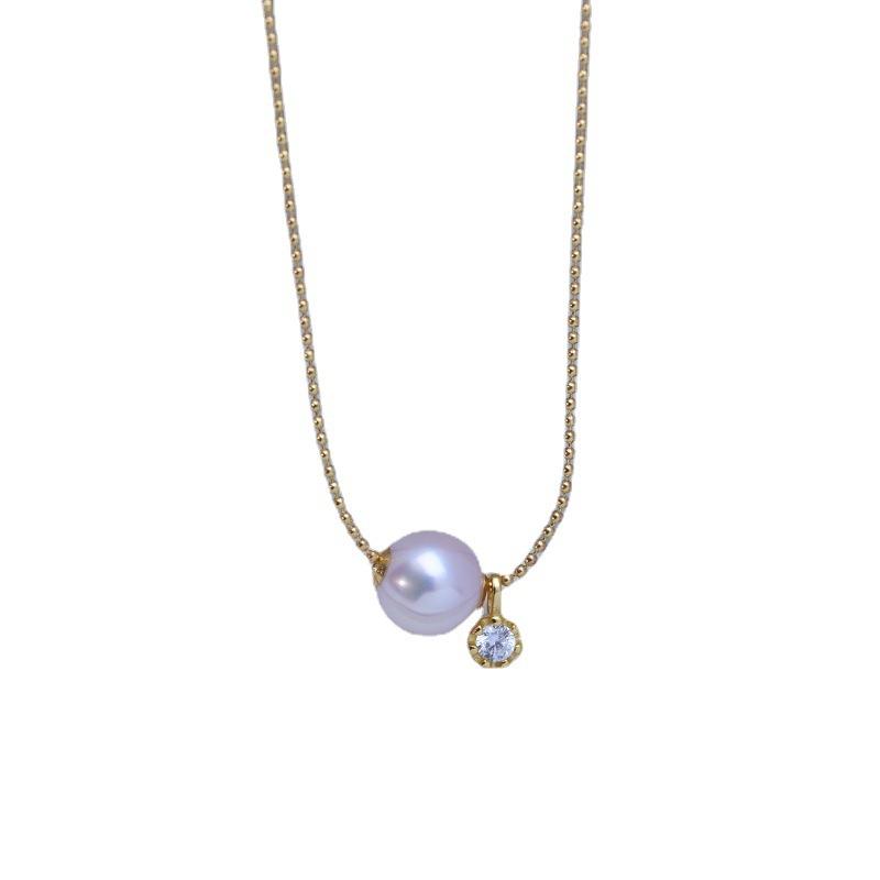 Collar con Colgante de Perla Redonda de 10-12 mm, Perforada, de Luz Intensa y con Pequeños Defectos, de Oro K G18, Zhuji Danshui Edison