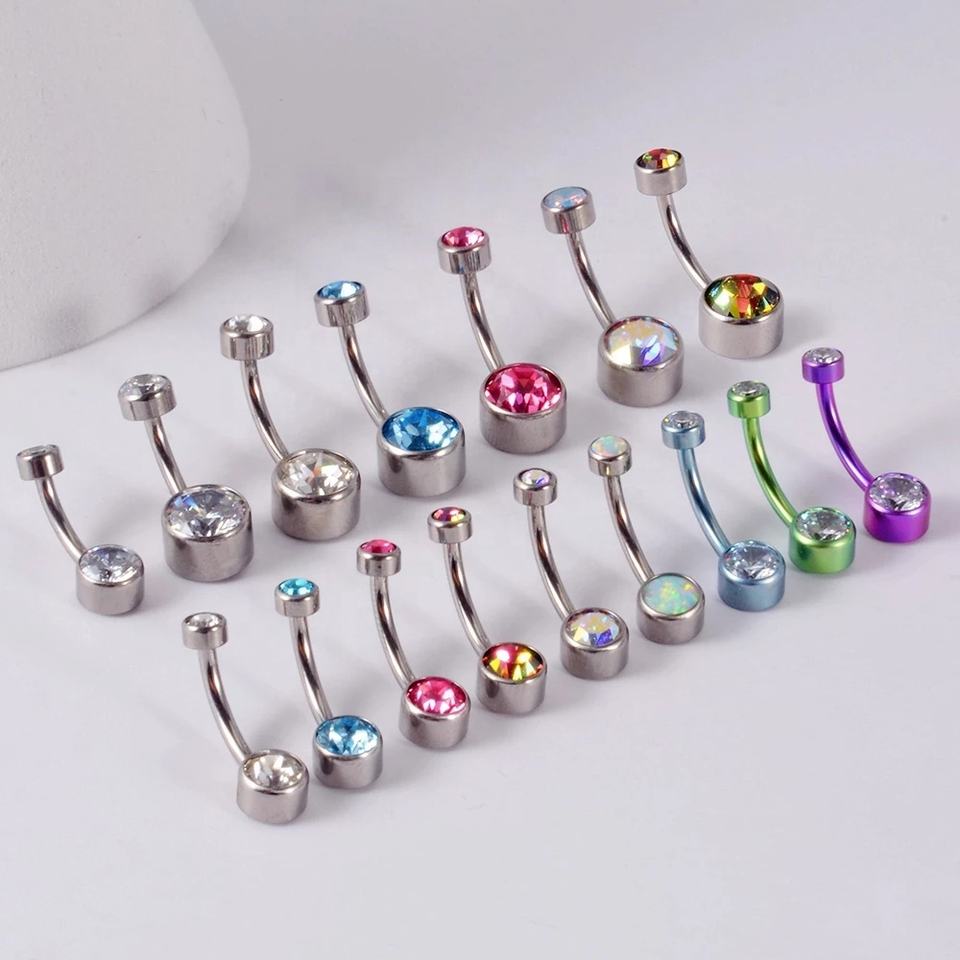 Piercing:14g titanio bisel conjunto doble joya ombligo anillos