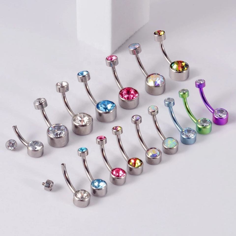 Anillos de ombligo con rosca interna de titanio sólido G23, conjunto de bisel de doble circón superior, joyería para Piercing en el ombligo
