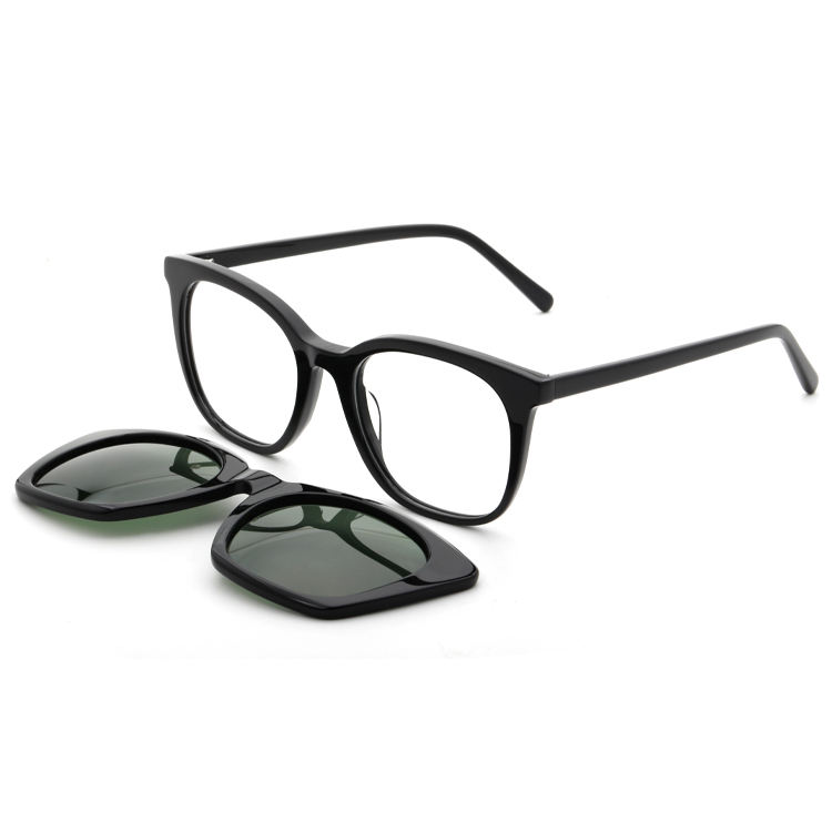 G5701 Nuevo diseño: montura de acetato con clip solar de acetato, gafas cuadradas con clip magnético fuerte polarizado