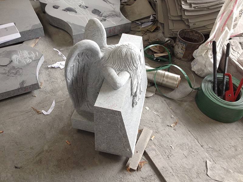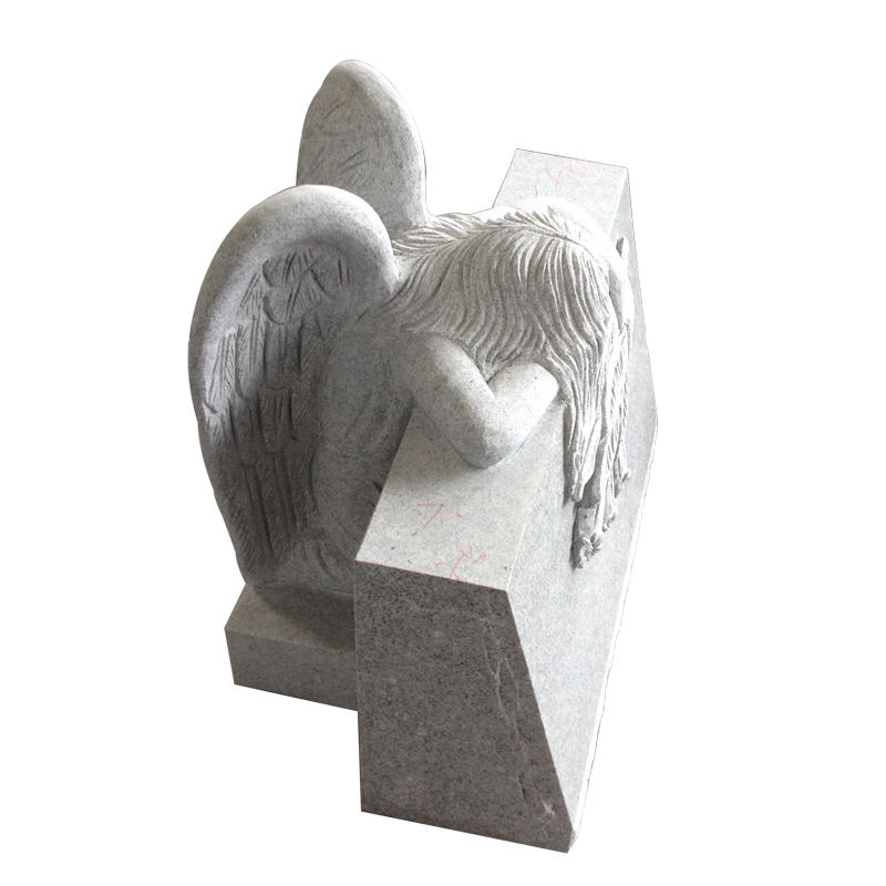 Producto:Lápida de granito gris G9402 con forma de ángel llorando