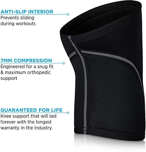 GAF Soporte de gimnasio de alta calidad Compresión Neopreno Levantamiento de pesas en cuclillas Mangas de rodilla de 7mm