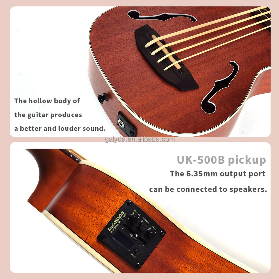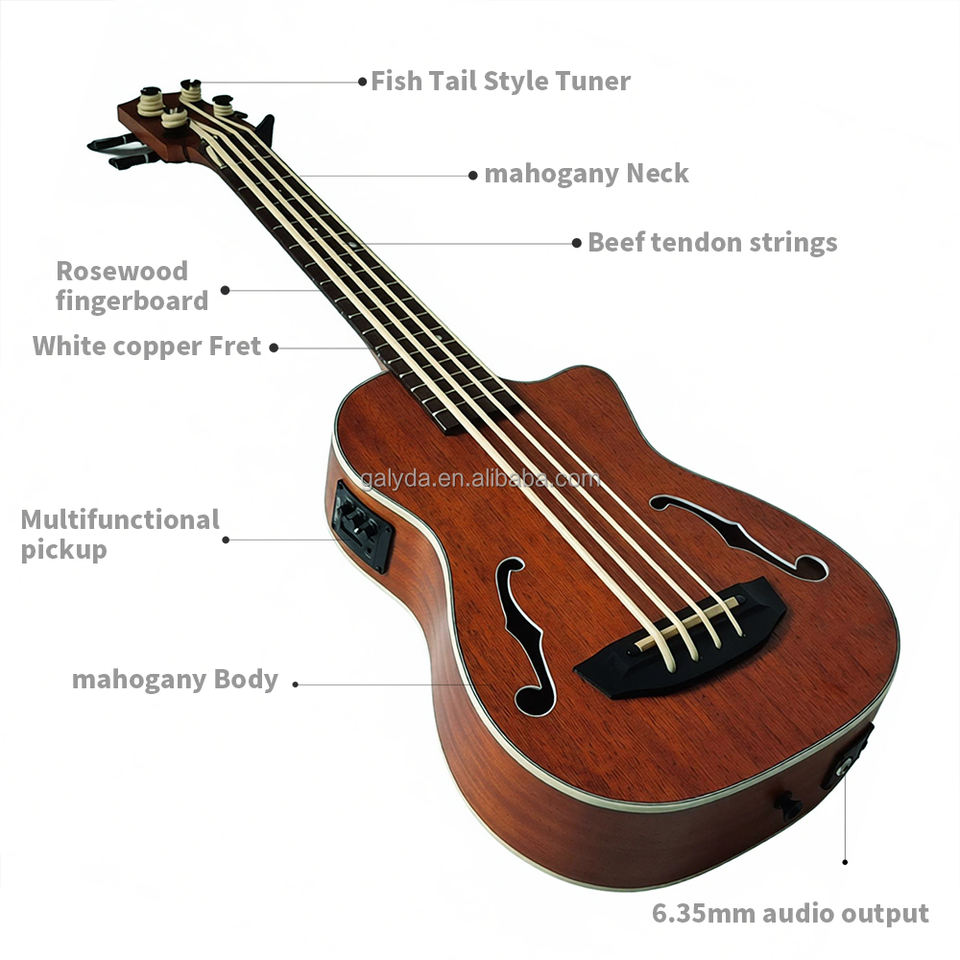 Ukelele bajo GALYDA de 30 pulgadas con cuerpo de caoba, ecualizador, bolsa de 10 mm de grosor, cable de conexión de audio, salida de audio de 6,35 mm