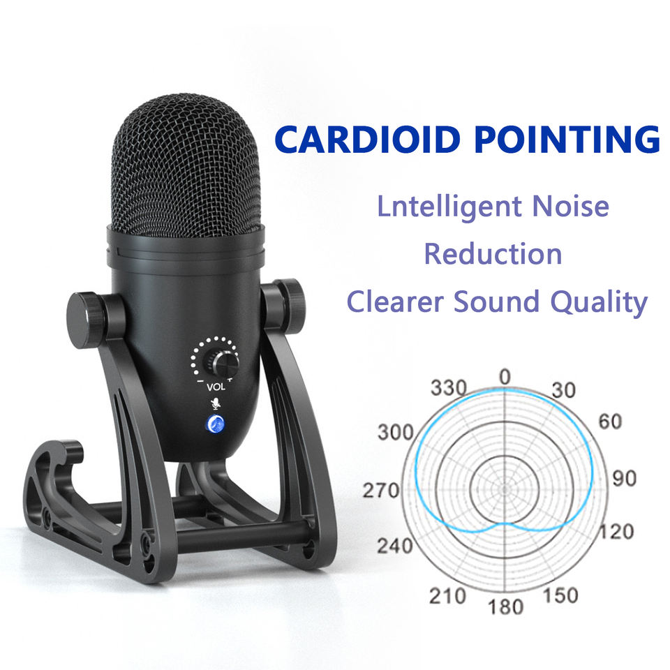 Micrófono de condensador con cancelación de ruido USB todo metal para estudio de grabación en vivo por ordenador, micrófono de condensador con grabación en vivo, todo tipo de metal