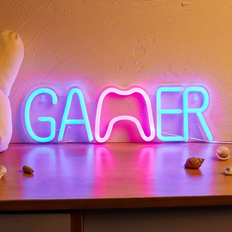 GAMER Gamepad Led Letrero de neón regulable 5V USB Sala de juegos Letreros de neón Luces para niños Adolescentes Niñas Regalo de cumpleaños Decoración de pared del dormitorio