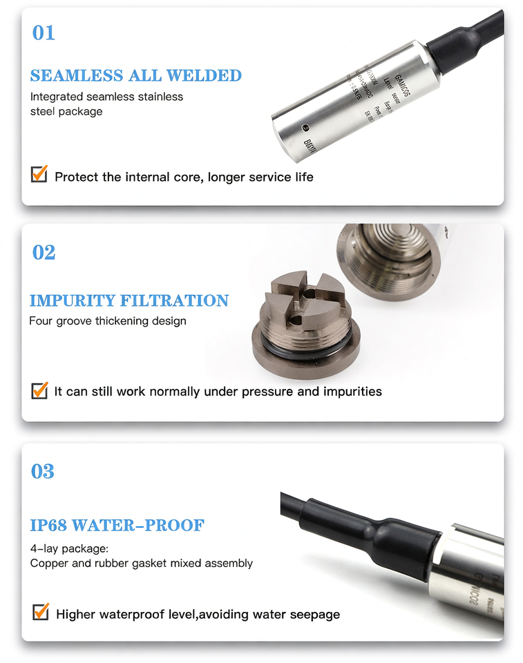 Nombre del producto:Sensor de Presión Sumergible Subacuático GLT500 4-20mA