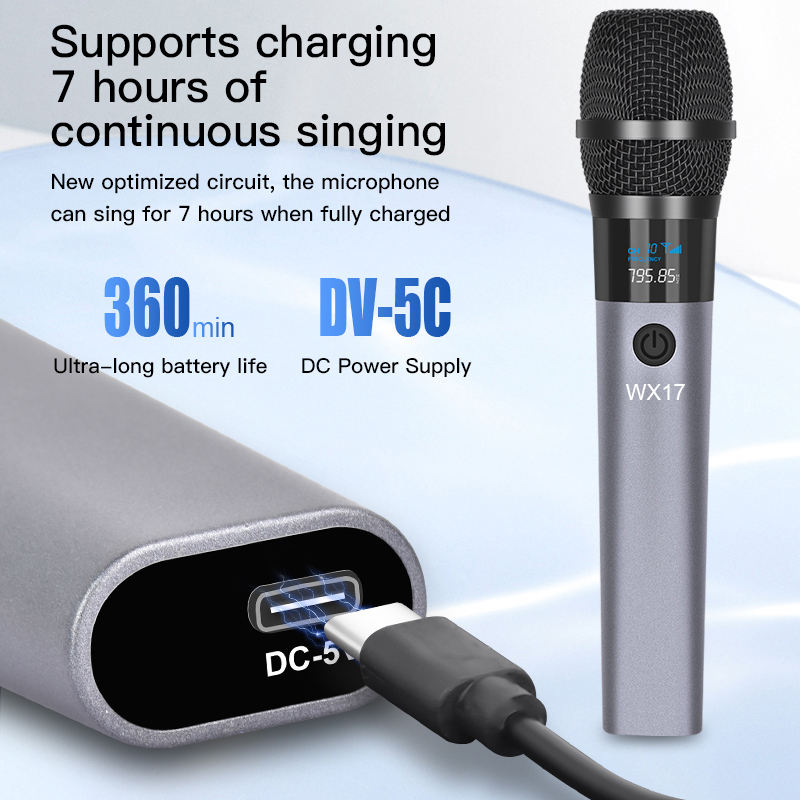 Micrófono Dinámico Inalámbrico UHF de Mano GAW-WX17, Micrófono Inalámbrico para Actuaciones en Escenario, Karaoke, Fiestas en Casa, Canto Profesional