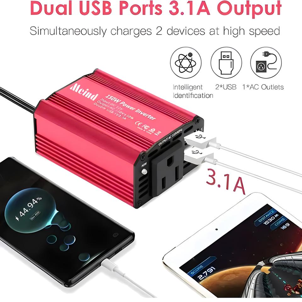 Inversor de Corriente para Automóvil GCSOAR de CC a CA de 200 W con Doble Enchufe UA y Doble USB