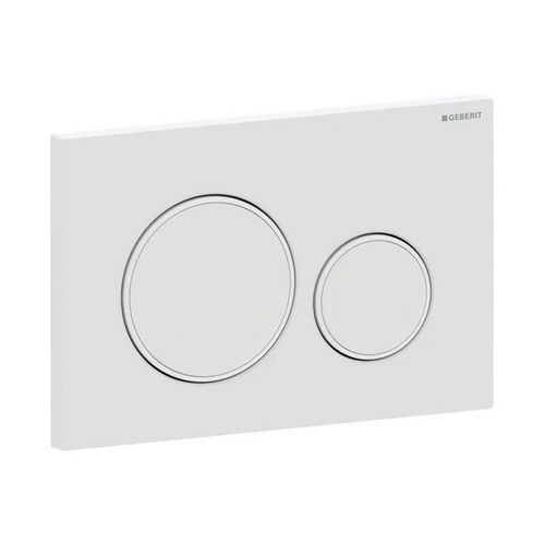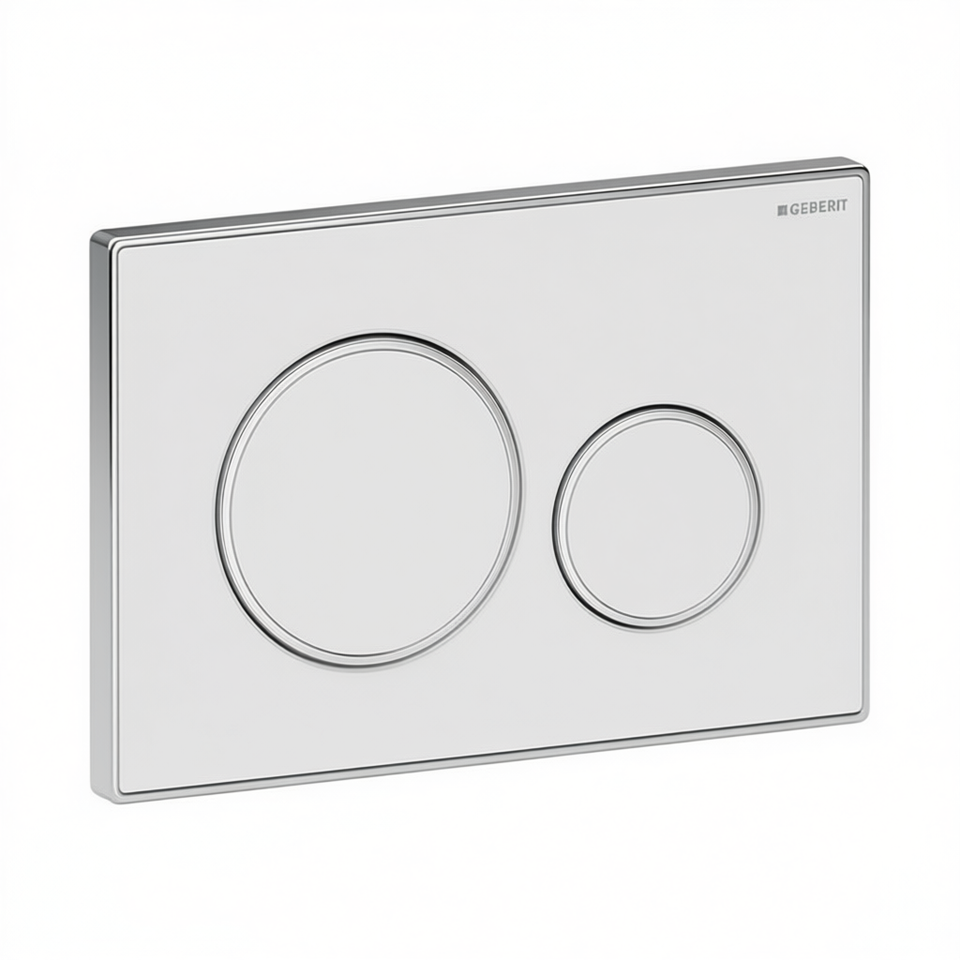Placa de Control GEBERIT Sigma 20 de 2 Botones, Blanco con Bordes Cromados, 24.6 cm de Largo, Botón de Inodoro