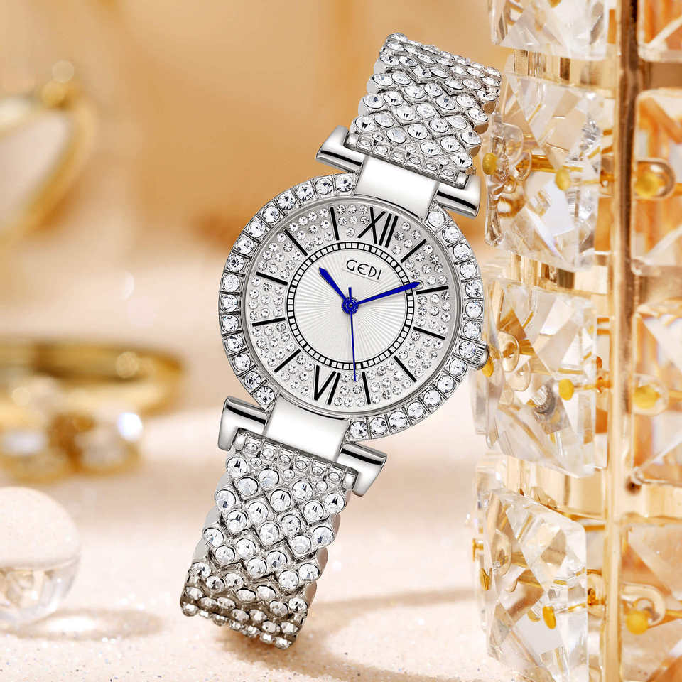 Reloj de Cuarzo GEDI 52057 para Mujer, con Diamantes, Aleación de Acero, Cristal, Diseño de Lujo, Estilo Cielo Estrellado, Popular en Internet
