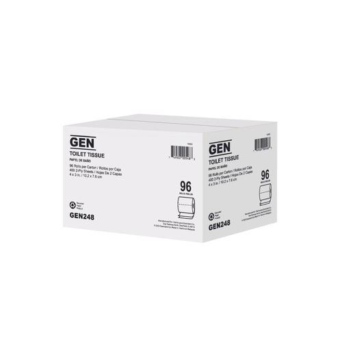 Papel Higiénico Estándar GEN Soft de 4 Pulgadas x 3 Pulgadas, 2 Capas, Rollo de Papel Higiénico Blanco, 96 Rollos/Caja, 3 Capas
