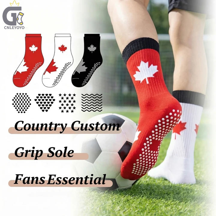 Calcetines de Fútbol Antideslizantes GENKE con Logotipo Personalizado de País, Suela con Agarre de Hoja de Arce, Calcetines de Fútbol para Equipo, para Entrenamiento y Competencia Deportiva