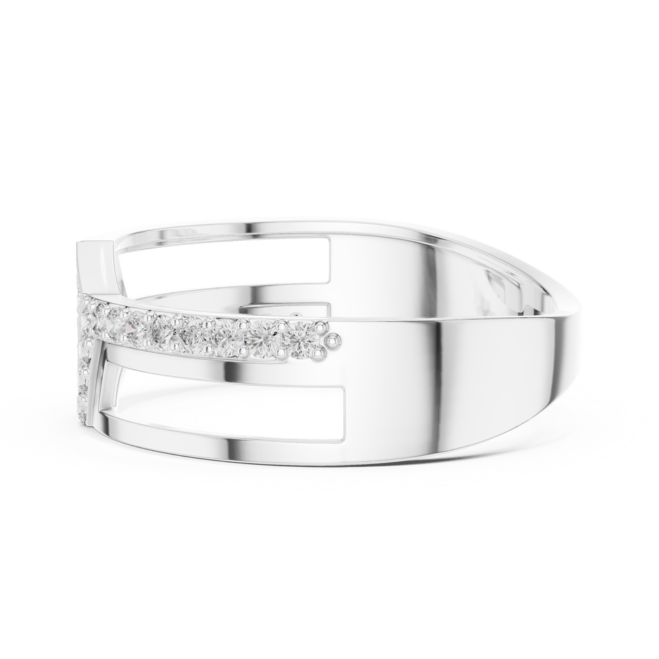 Anillo de banda dividida con diamantes geométricos cultivados en laboratorio, oro blanco de 18 quilates con baño de rodio, de lujo, para boda, compromiso, regalo, uso diario en la oficina, para hombre