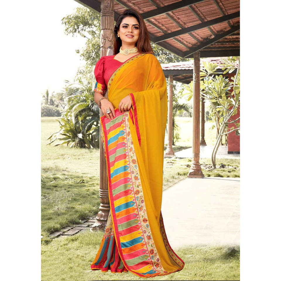 GEORGETTE TELA SAREE EN COLOR AMARILLO ESTAMPADO TRABAJO AMARILLO