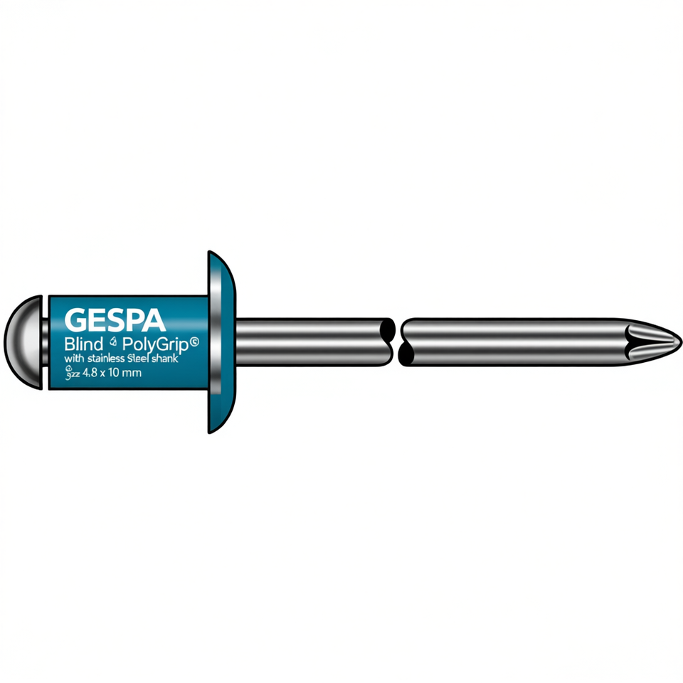 Remache Ciego GESIPA PolyGrip con Vástago de Acero Inoxidable, Tamaño 4.8 x 10 mm, Paquete de 50 Piezas