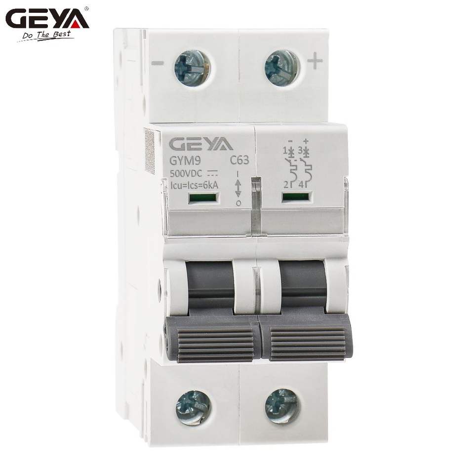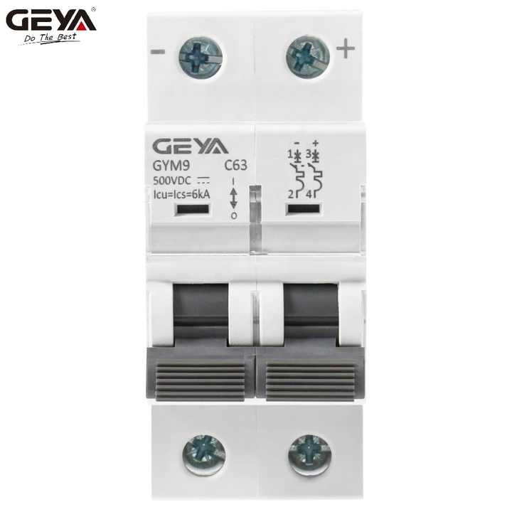Mini Interruptor Automático GEYA GYM9 DC de 63 Amperios, Interruptores de Circuito de 2 Polos, Barra de Distribución MCB con Certificado CE, CB, SEMKO y SAA