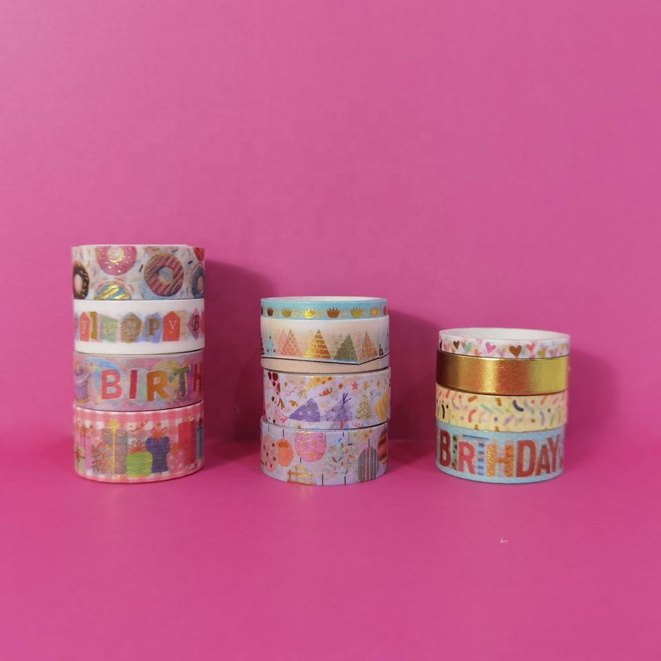 Impresión personalizada estilo femenino Feliz cumpleaños lámina de oro Washi Tape